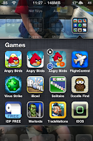 Look at Angry Birds Rio in the picture to the right. The glow behind it tells you it's running and the black X in the upper left kills it on the spot. In case you're wondering the blue dot on the lower-left comes from Backgrounder and it also tells you the app is running. I'll likely disable one or the other eventually.